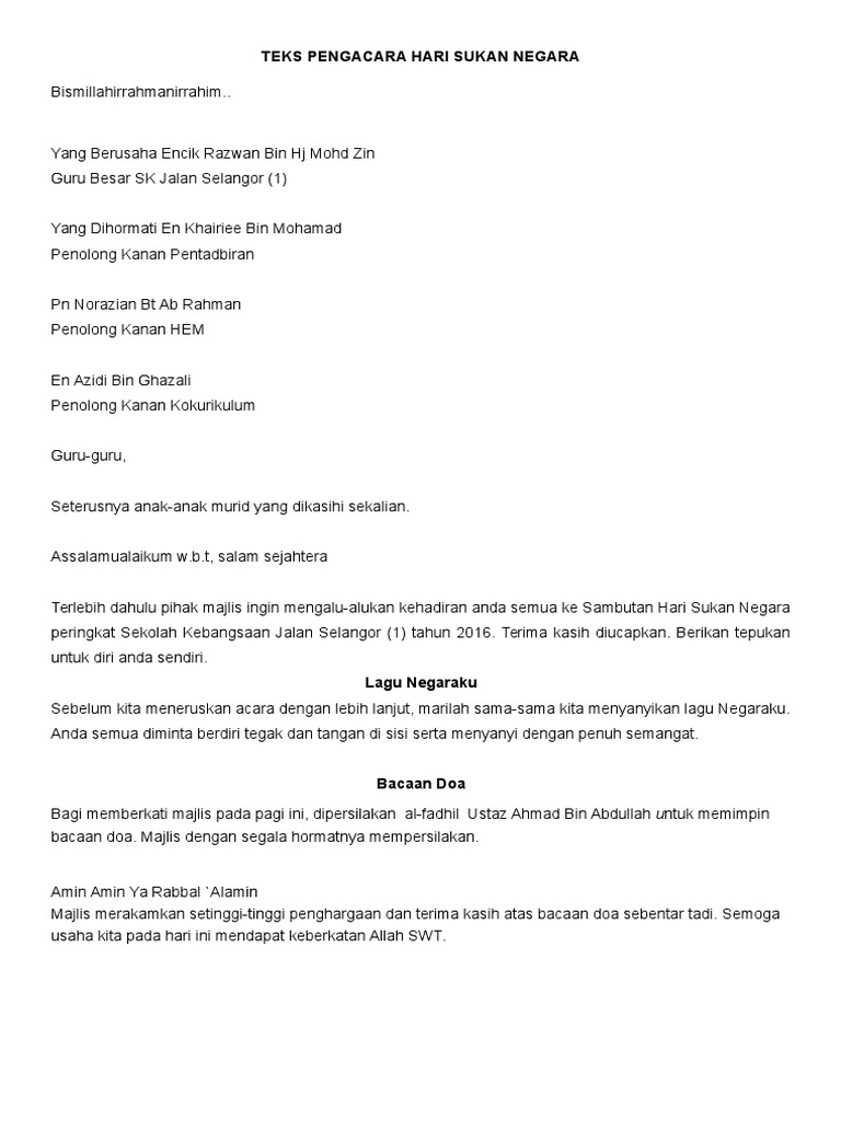 Teks Pengacara Majlis Hari Sukan Negara 2016 Pdf